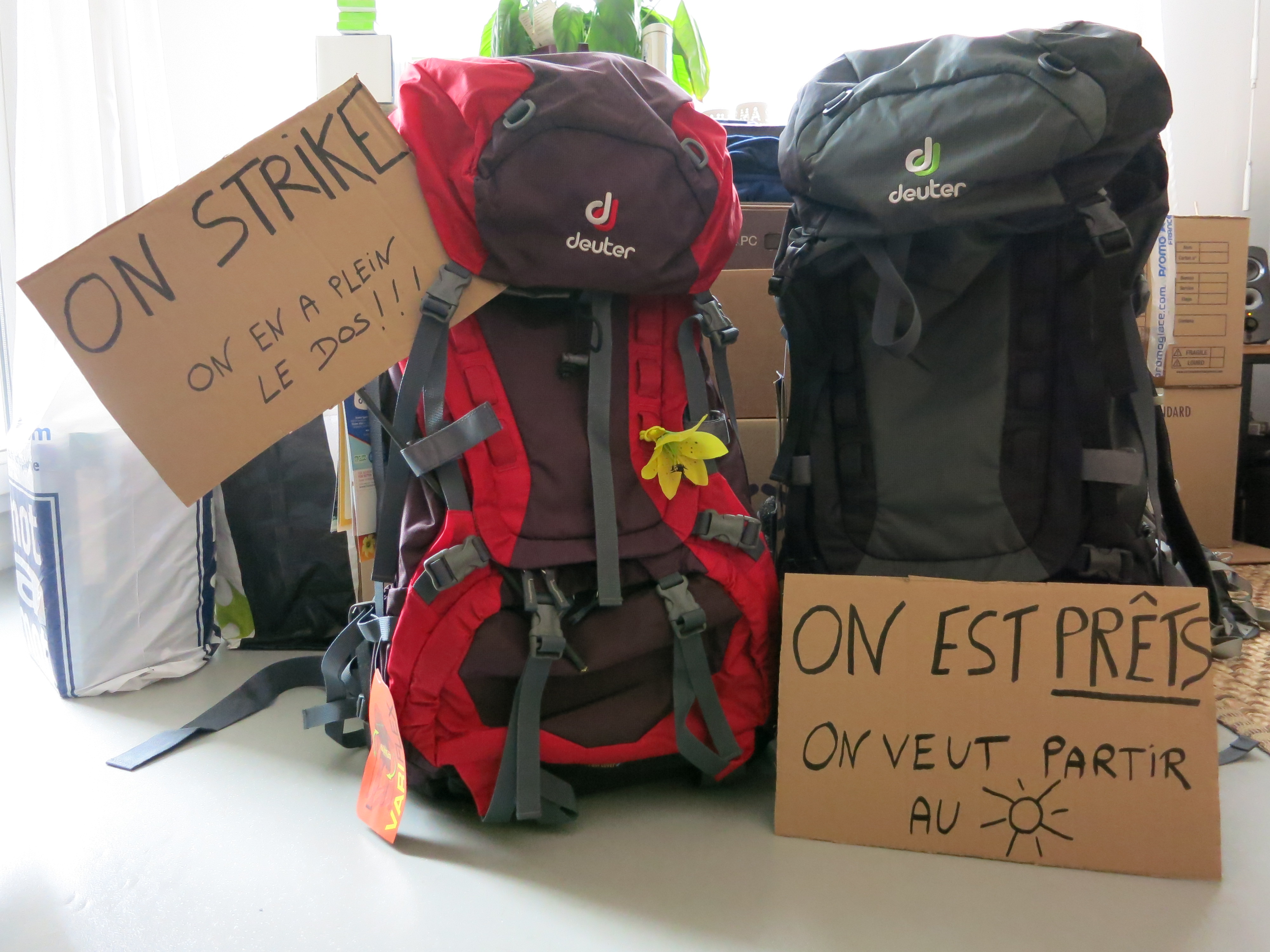 Le départ du travail, les aurevoirs qui se succèdent, les « tu réalises que c’est la dernière fois que… », le déménagement à préparer (trouvez nous une personne en France qui aime ce moment, on l’embauche direct !), l’administratif, les dilemmes interminables (3 jours pour choisir une trousse de toilette, une demi-journée au Vieux Campeur pour choisir notre sac et 4 visites pour choisir nos chaussures de marche, qui dit mieux ?). Et puis il y a eu ce drame familial qui nous a touché de plein fouet, à deux mois et demi du départ et qui nous a éloigné quelque temps de notre projet. Cela nous aura appris au moins deux choses : la vie est fragile et doit être vécue à fond.